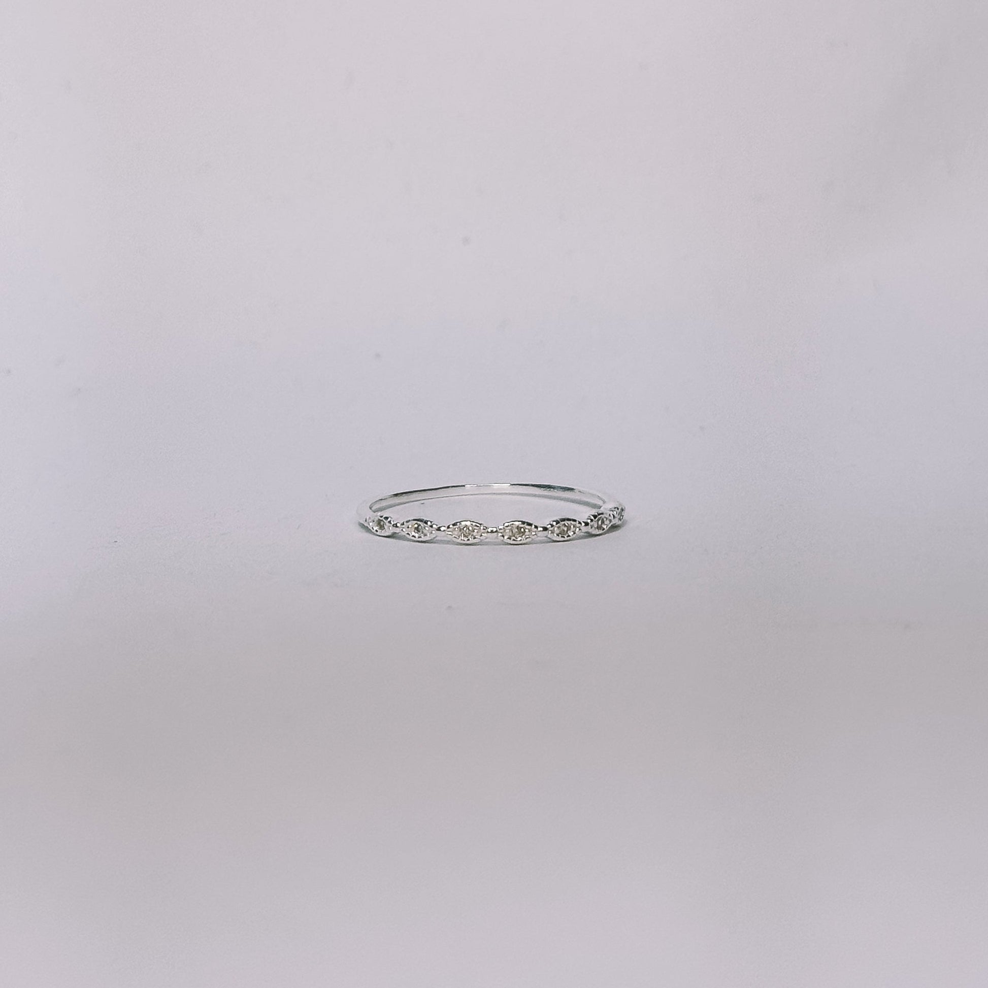 Anel confeccionado em Prata 925 legítima, cravejado de zircônias em formato navete que proporcionam um brilho sofisticado e delicado.