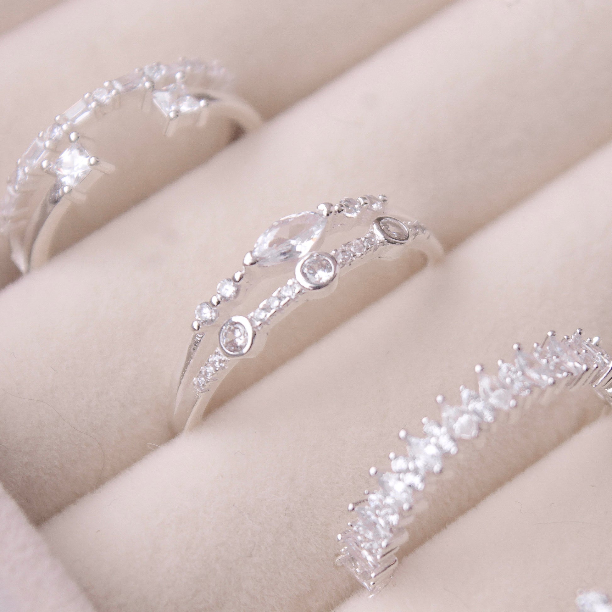 Anel confeccionado em Prata 925 legítima, com dois fios delicadamente cravejados em um mix de zircônias, refletindo brilho e elegância em cada detalhe.