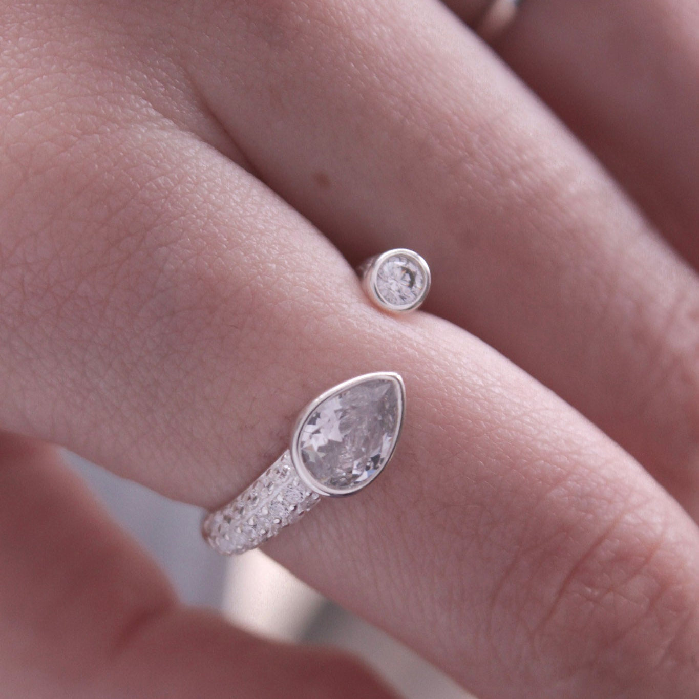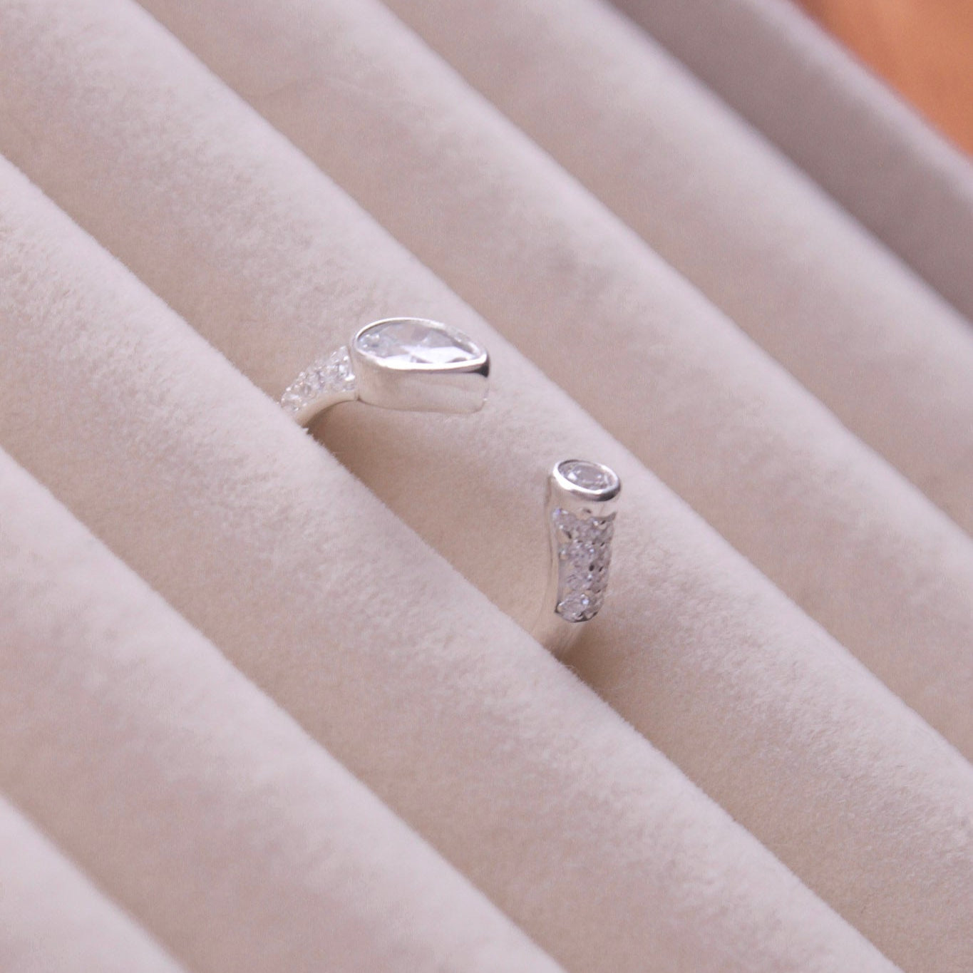 Anel confeccionado em Prata 925 legítima, com design regulável e cravejado co mix zircônias, que criam um equilíbrio elegante e moderno.
