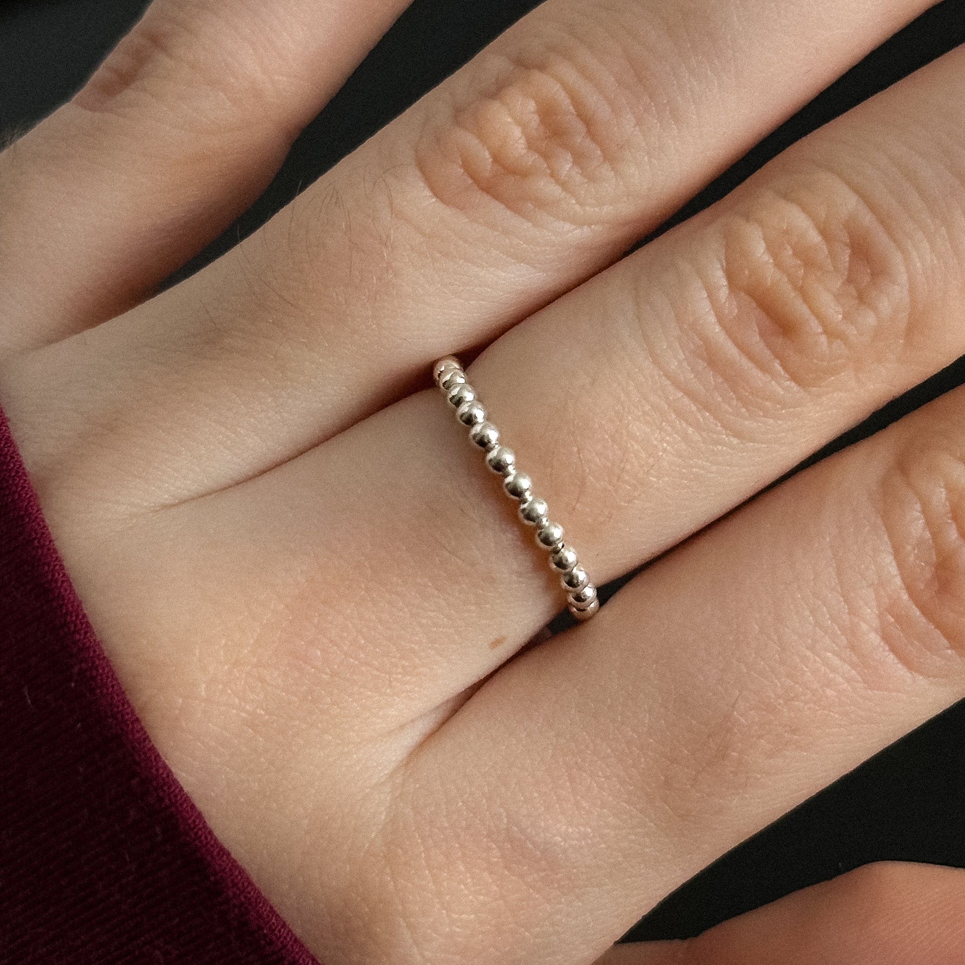 Anel confeccionado em Prata 925 legítima, com design antisstress composto por pequenas esferas lisas.