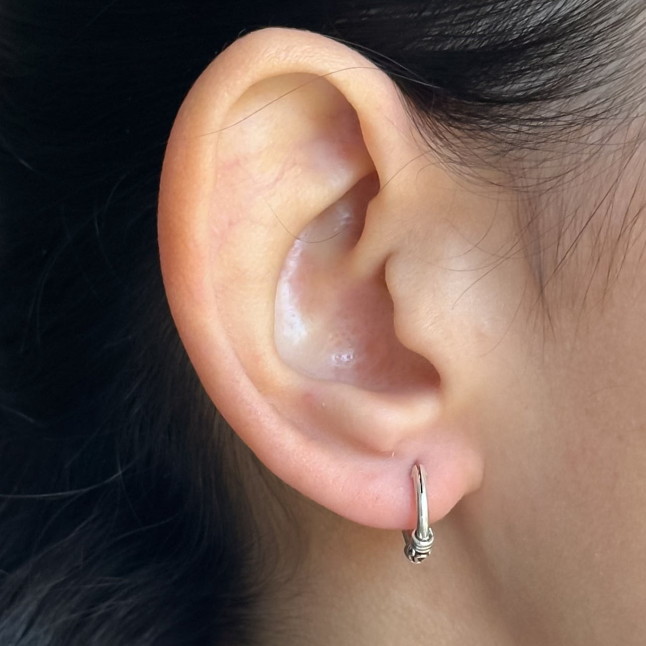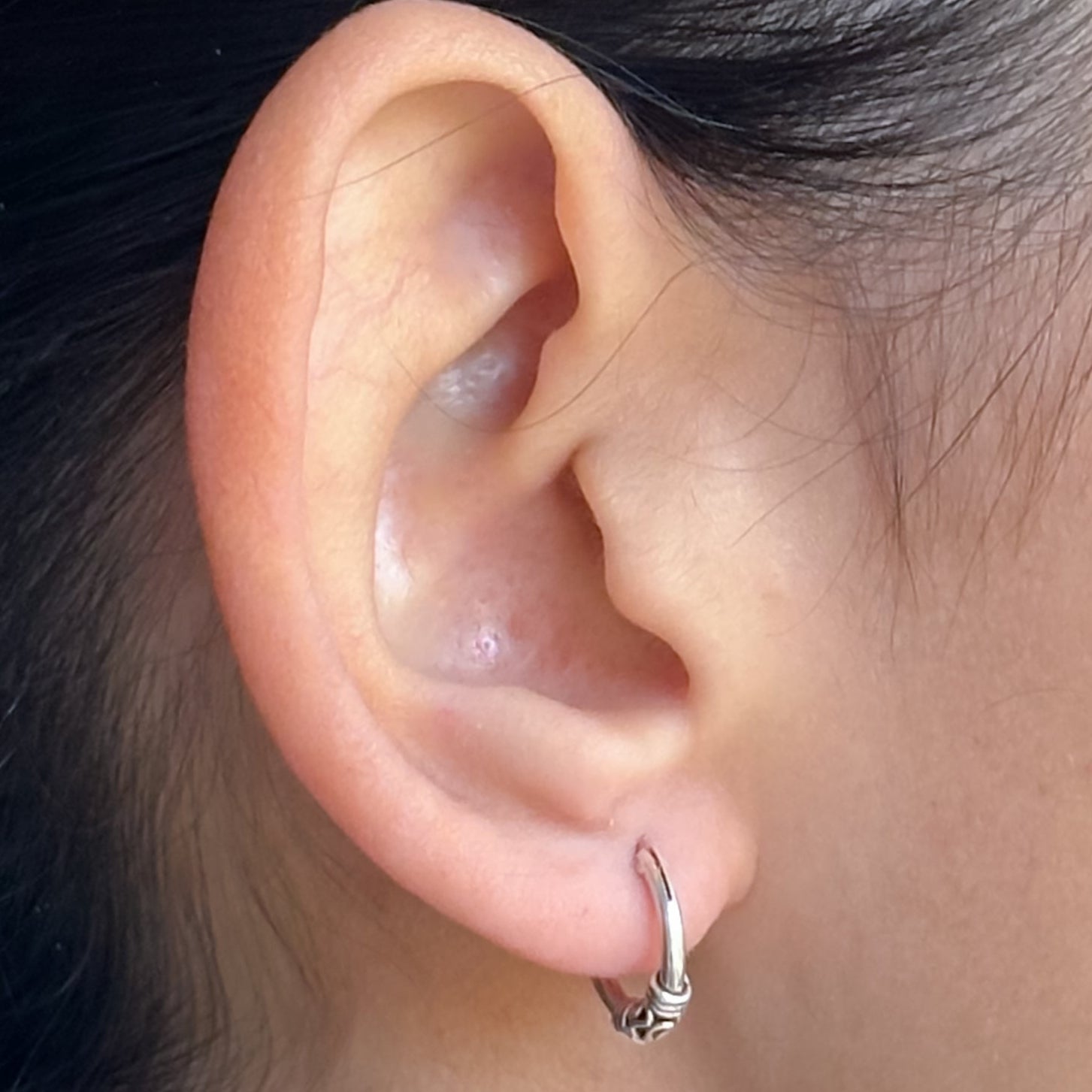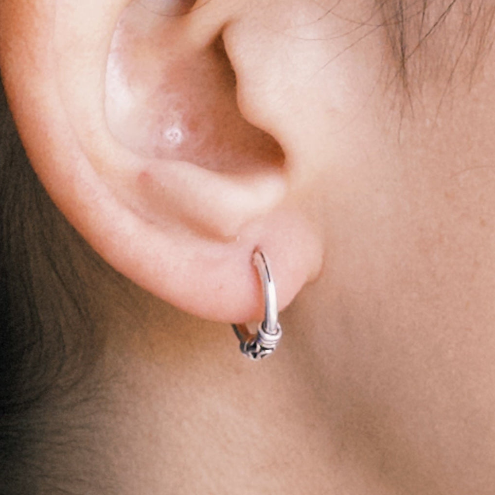 Brinco argola estilo Bali Tribal em Prata 925 com detalhe de 3 fios.