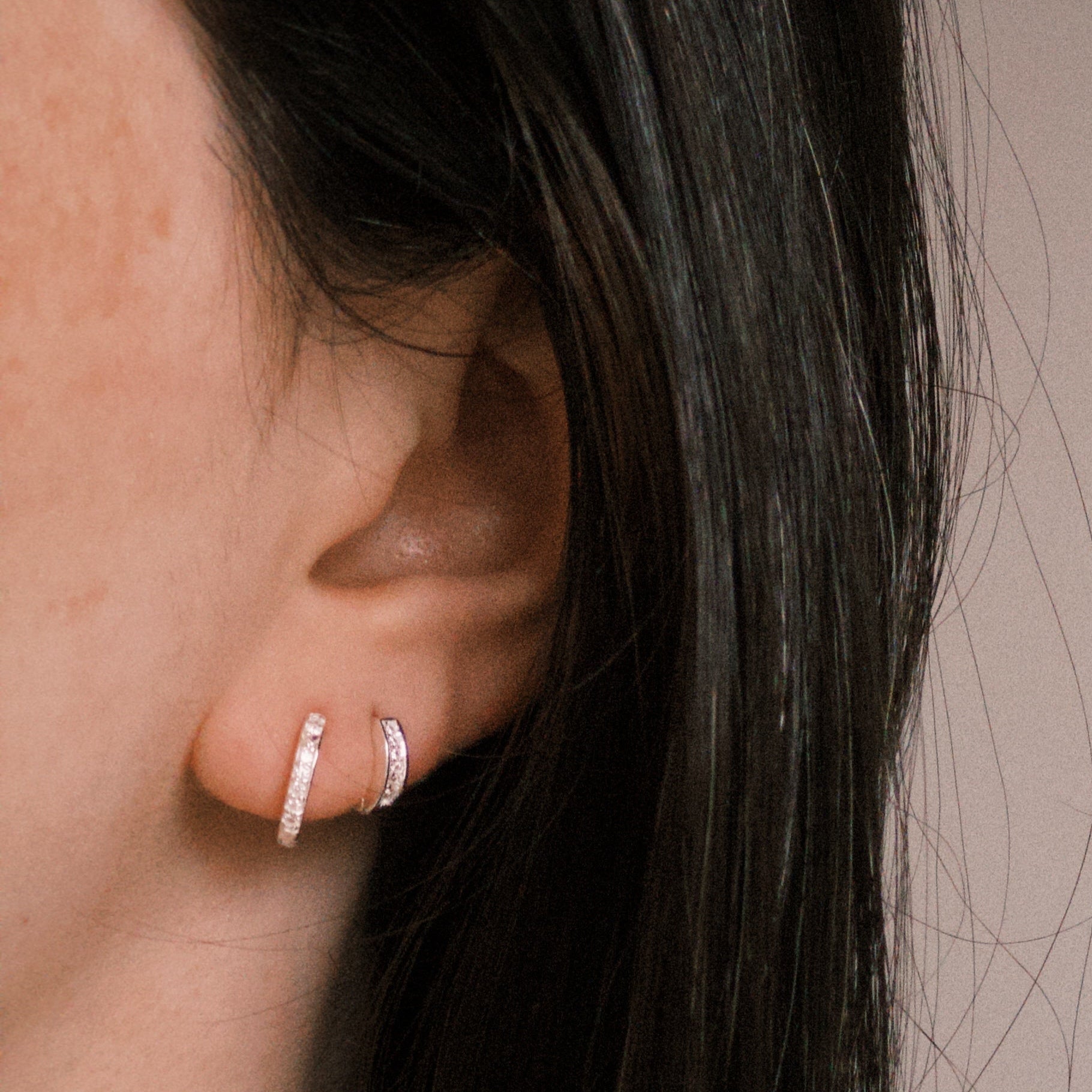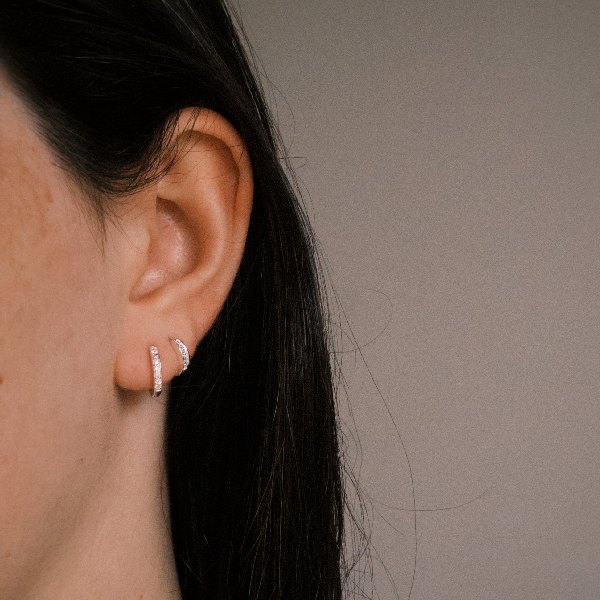Brinco argola em Prata 925, cravejado com zircônias incolores.