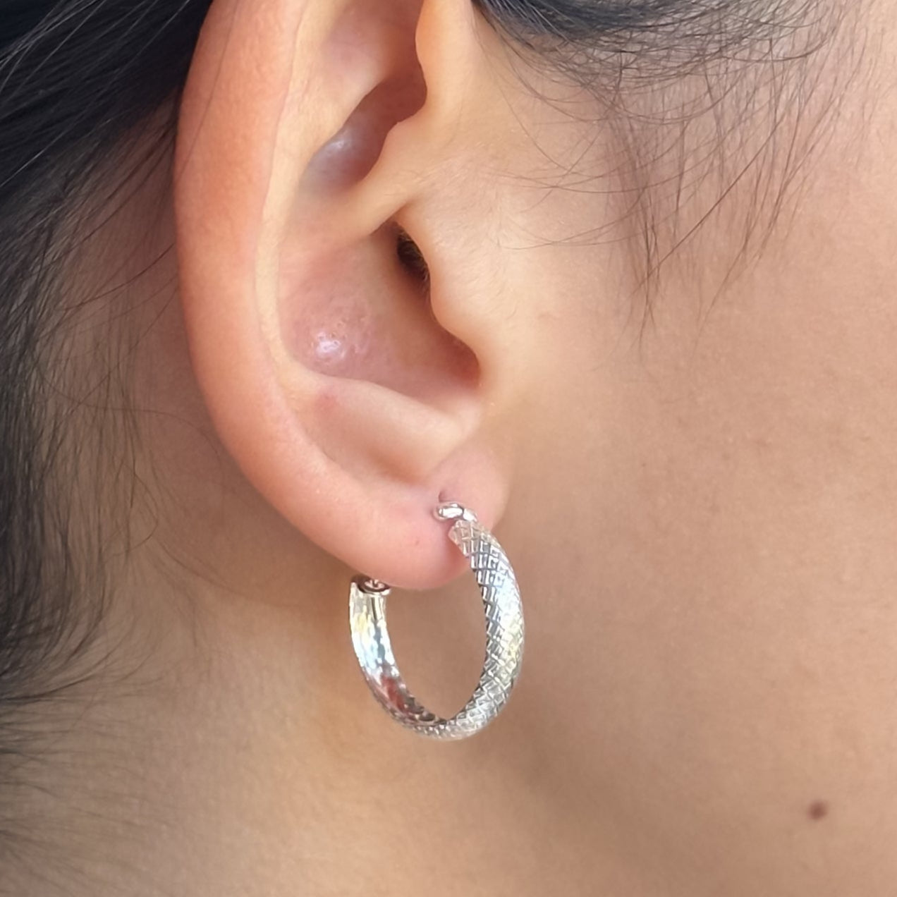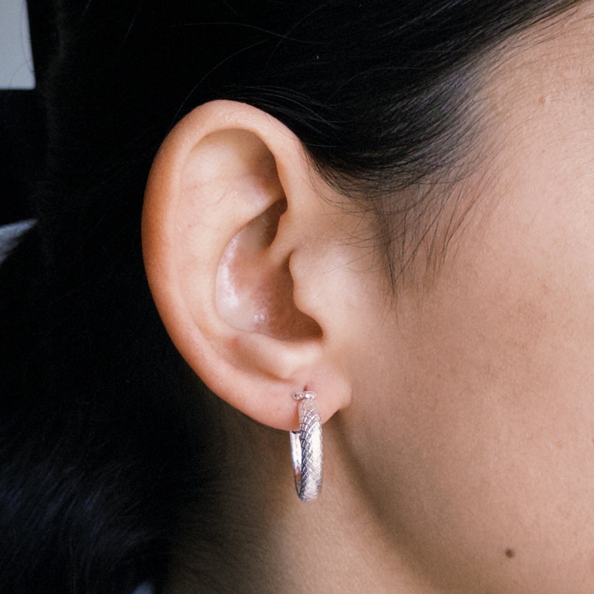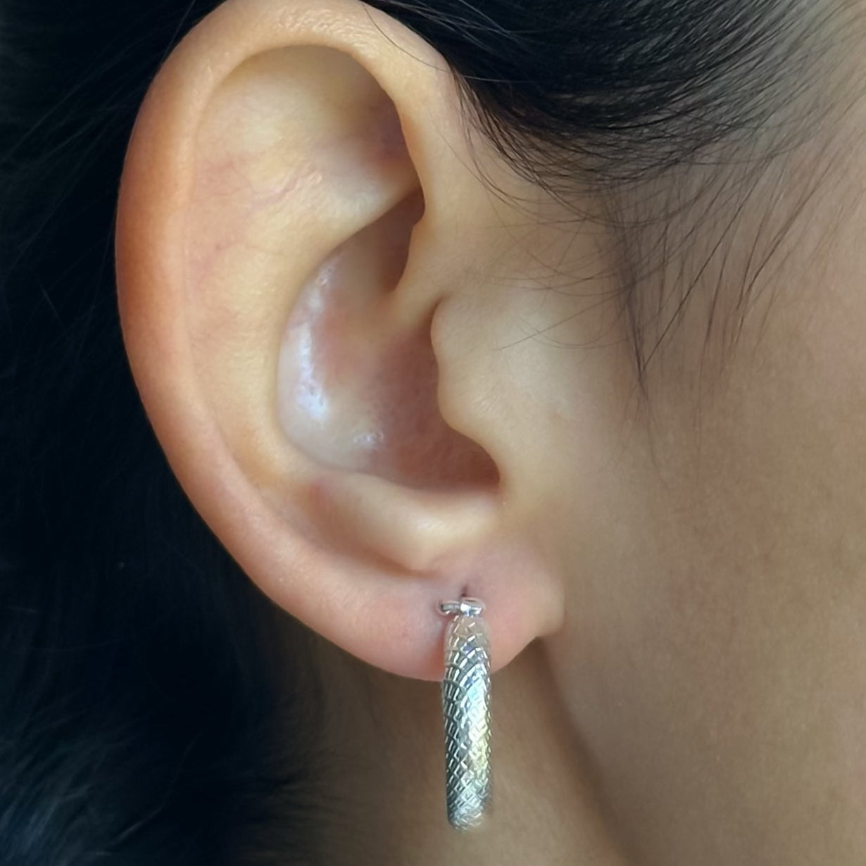 Brinco argola com design detalhado em Prata 925.