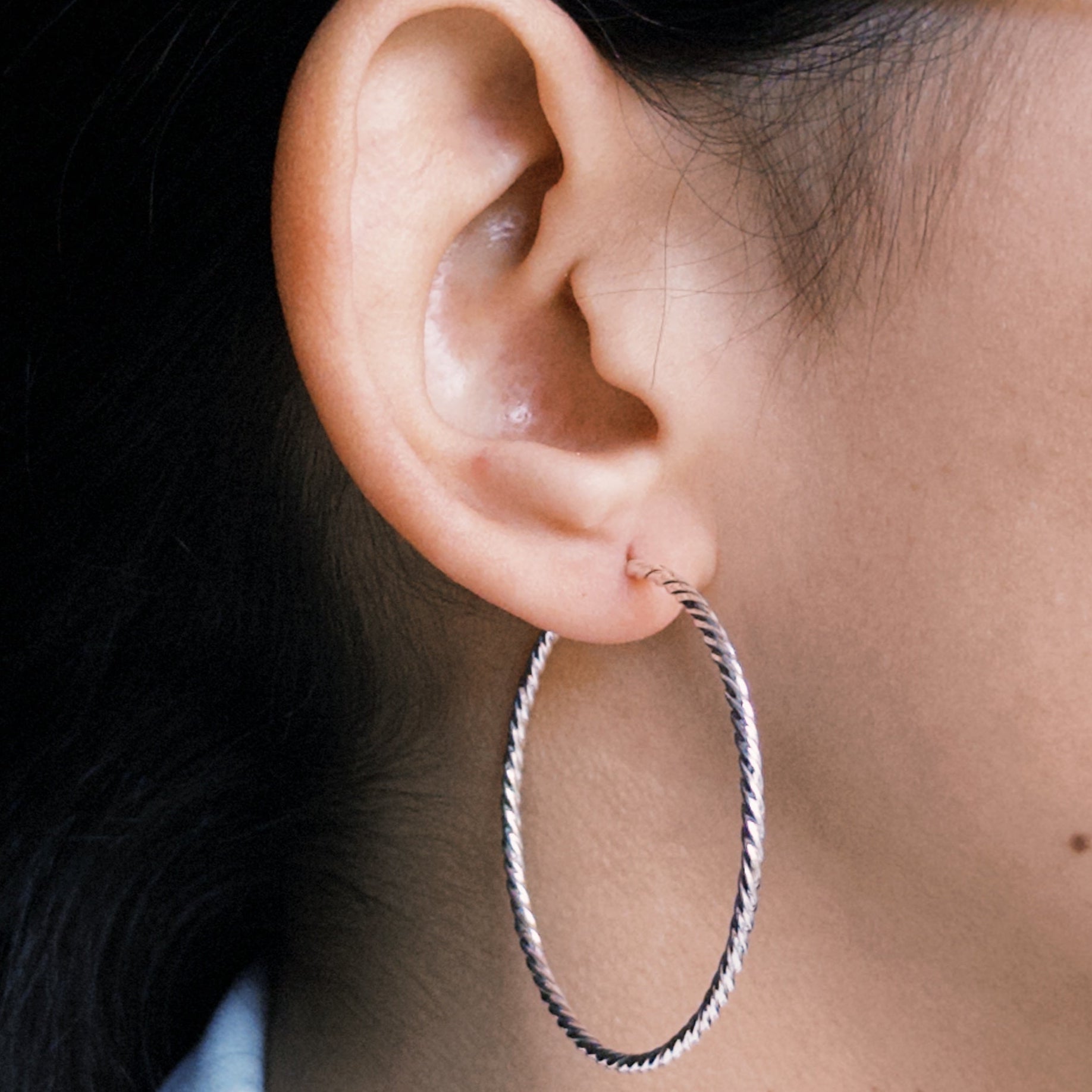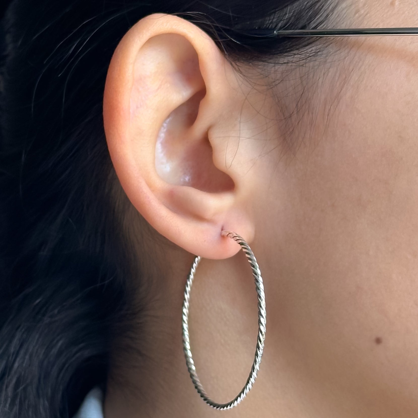 Brinco argola com fio retorcido e encaixe em Prata 925.
