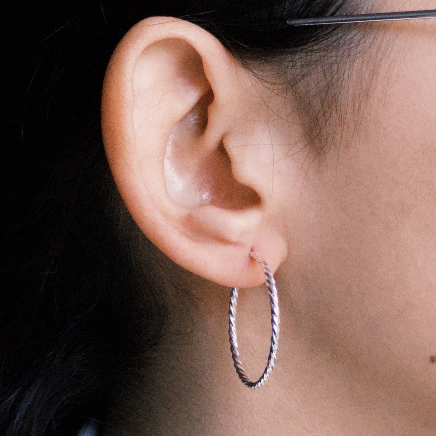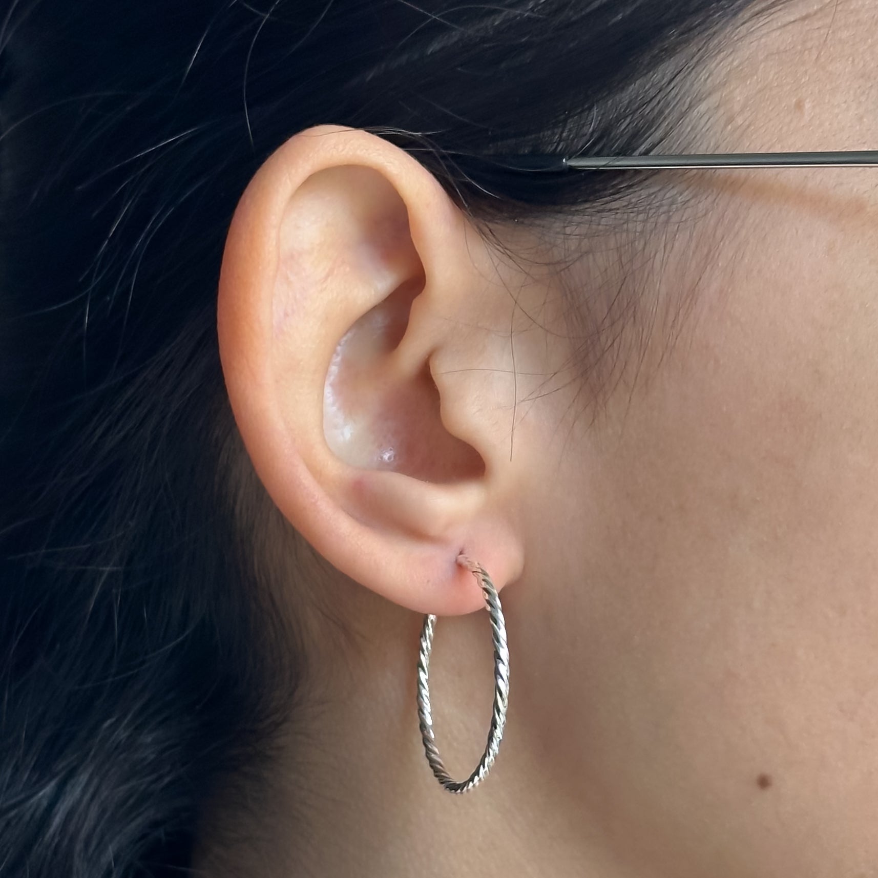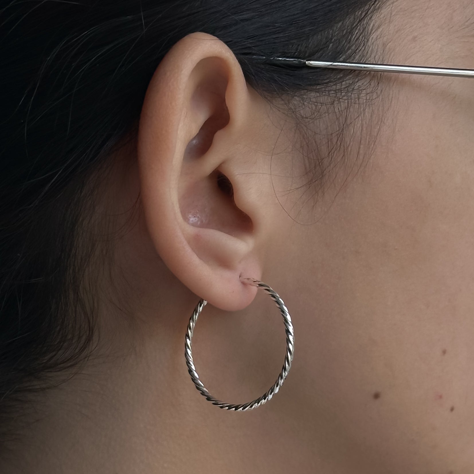 Brinco argola com fio retorcido e encaixe em Prata 925.