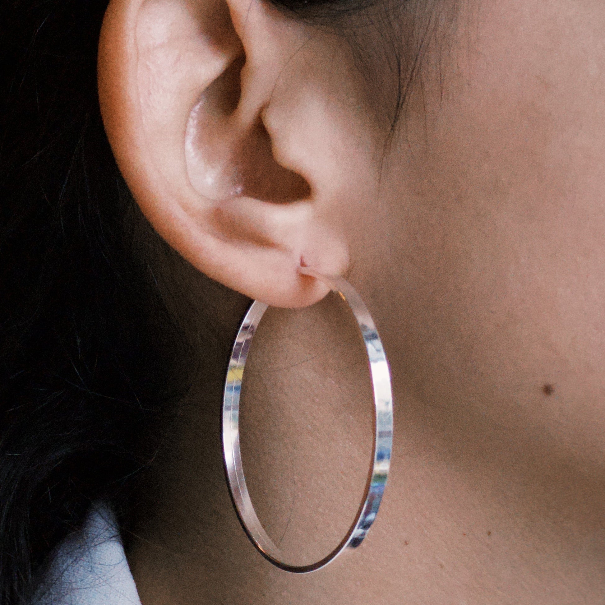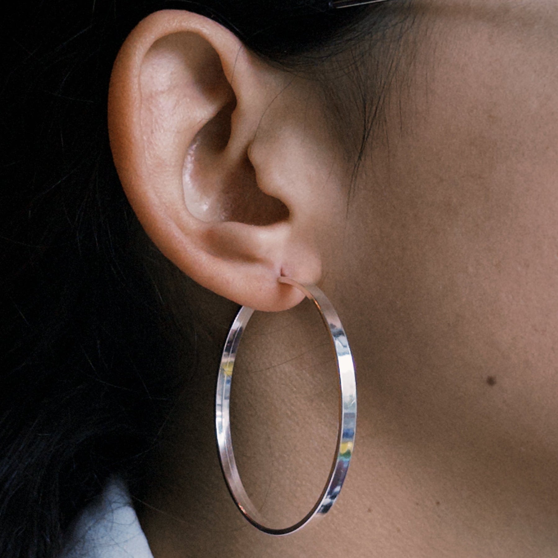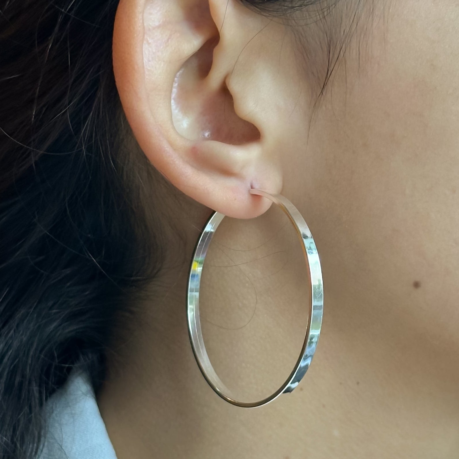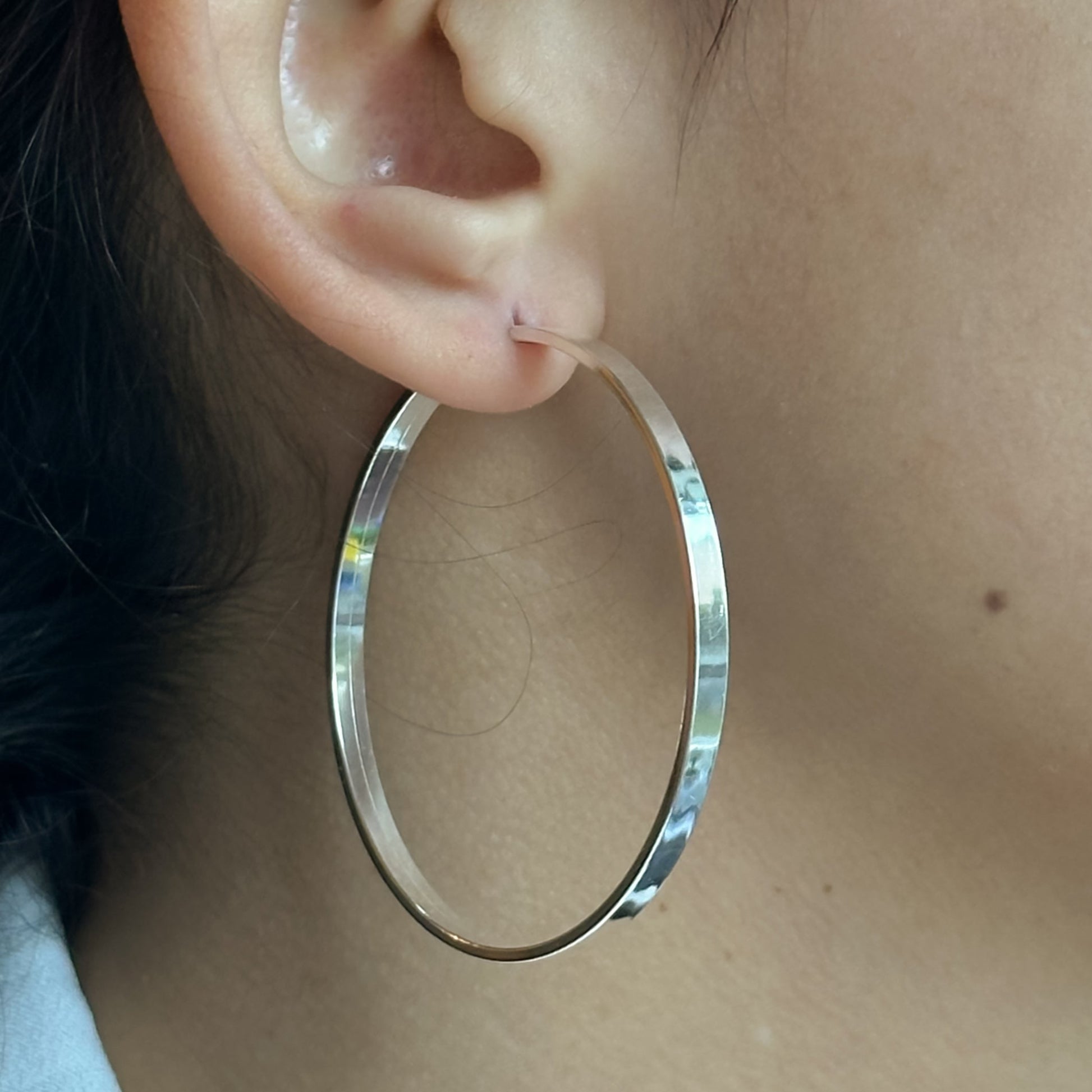 Brinco argola com fio quadrado espesso e encaixe em Prata 925.