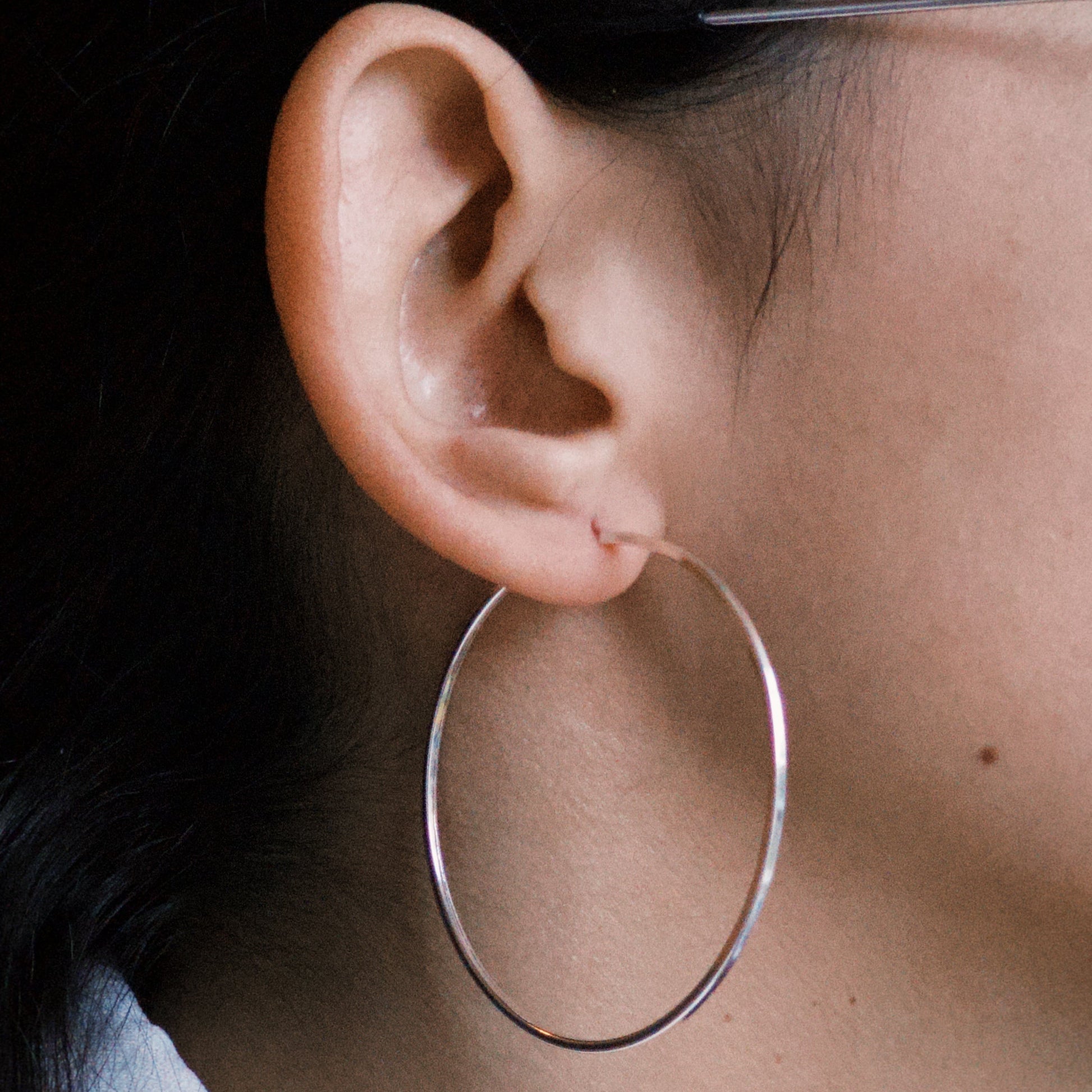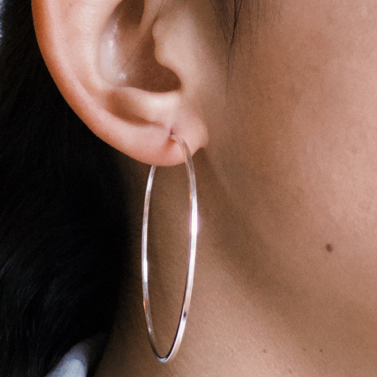 Brinco argola com fio quadrado e encaixe em Prata 925.