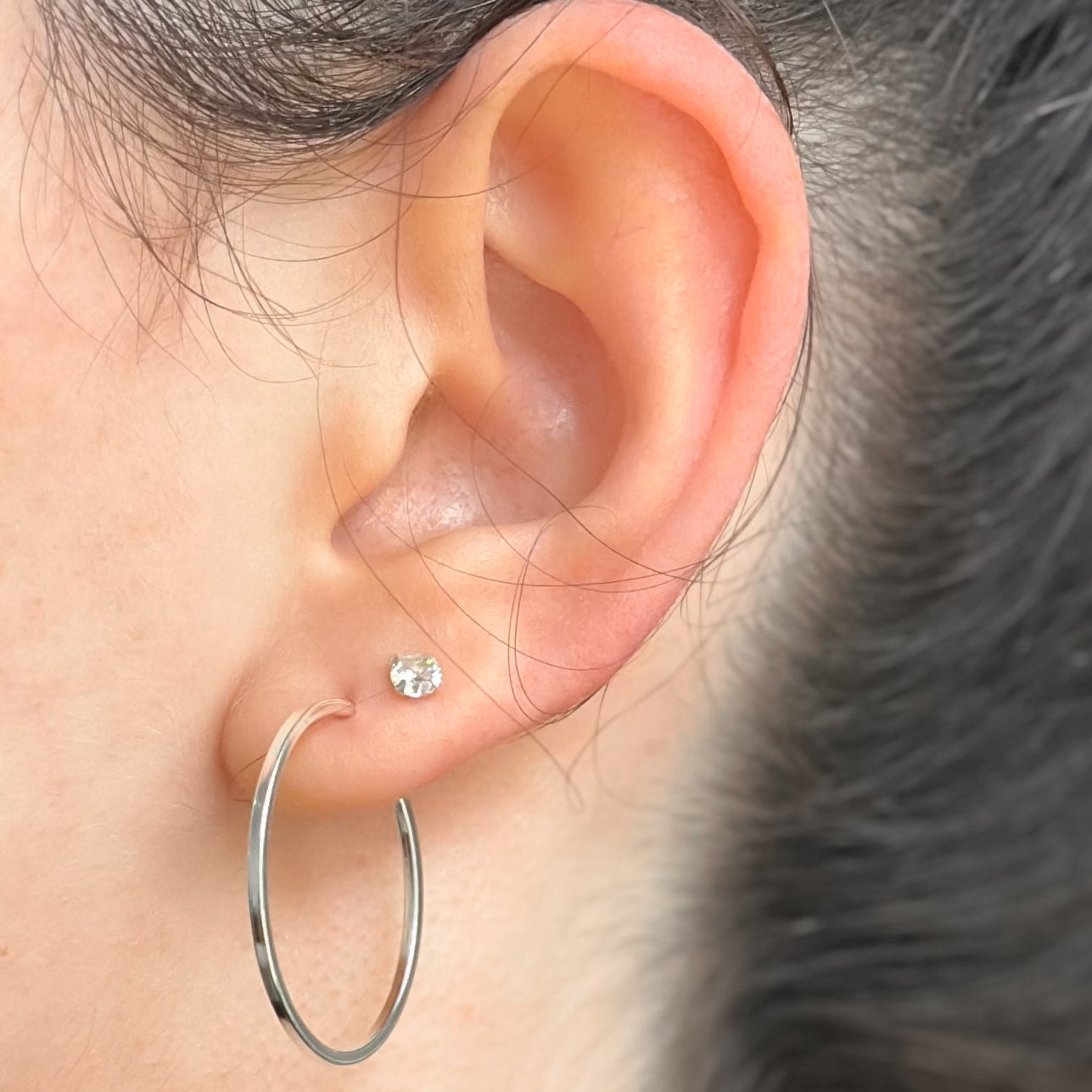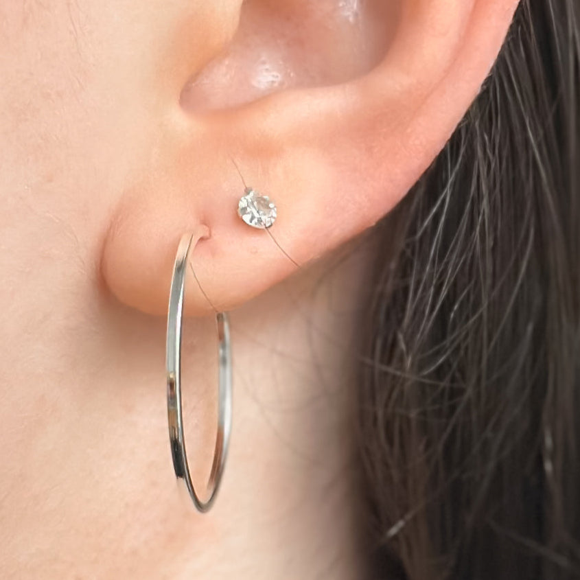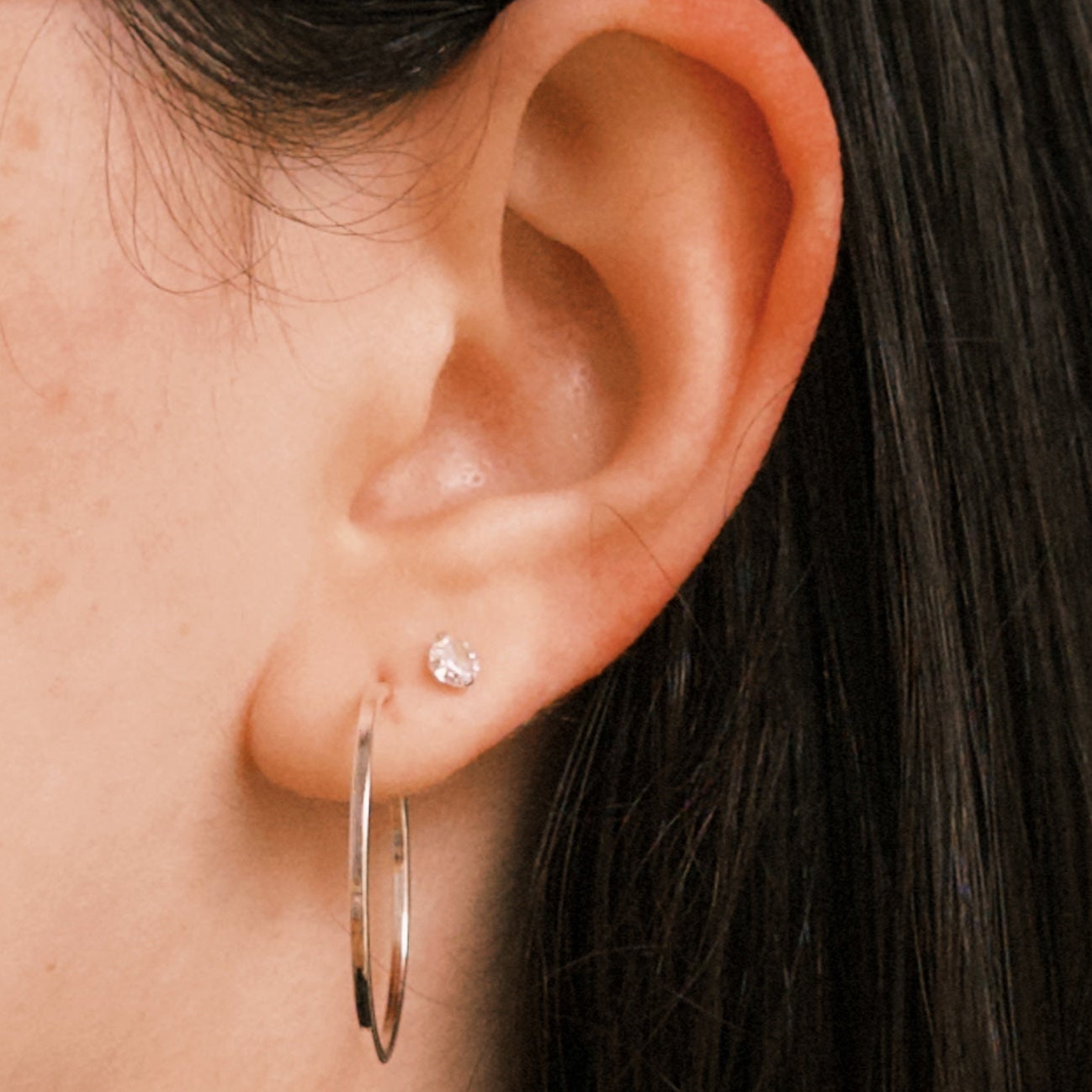 Brinco argola com fio quadrado e encaixe em Prata 925.