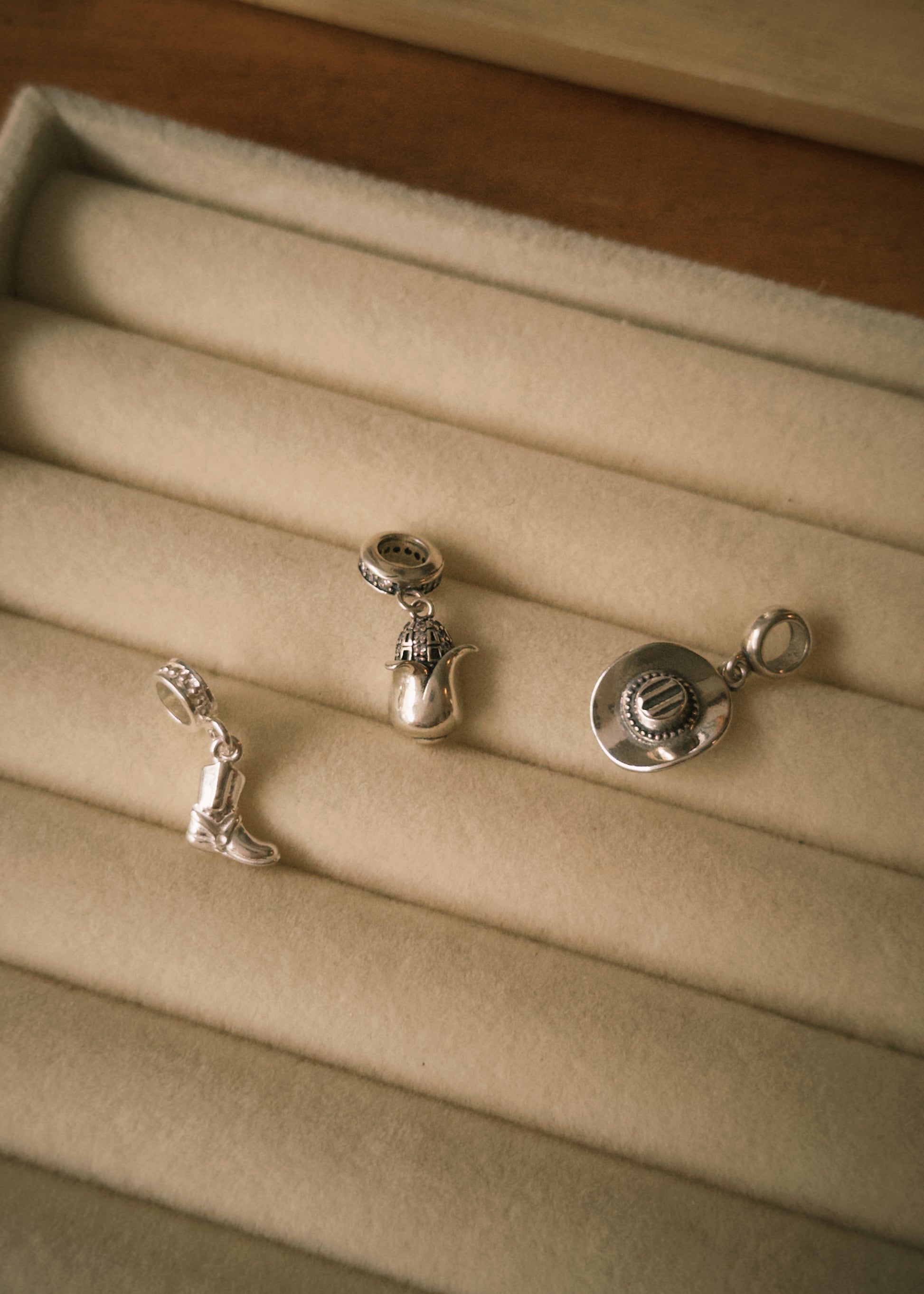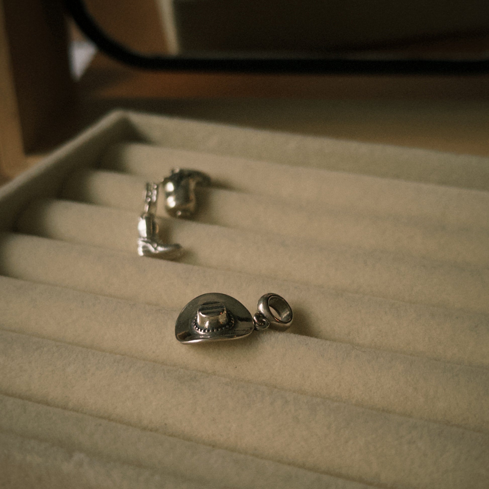 Berloque em Prata 925 com formato de chapéu country e acabamento em prata envelhecida, representando liberdade, autenticidade e alma forte.