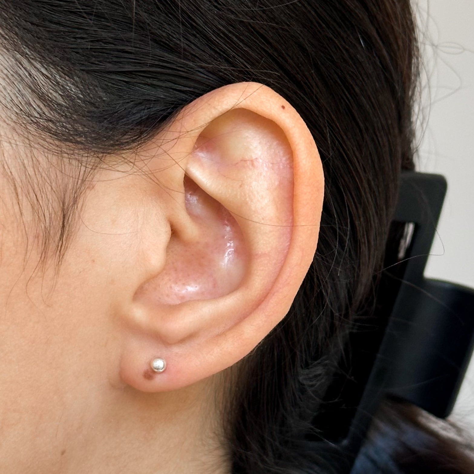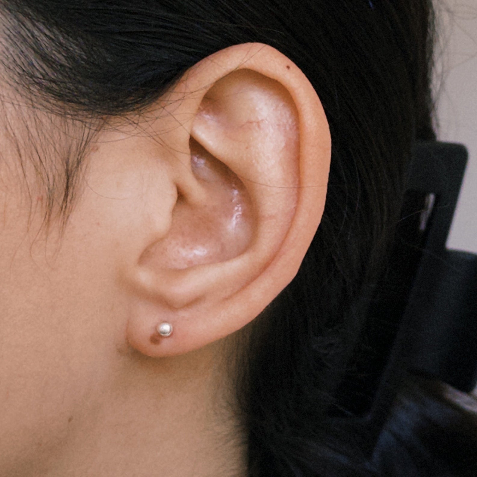 Brinco em Prata 925 com bolinha polida de 3mm. Extremamente delicado, perfeito para segundos furos ou um visual mais clean.