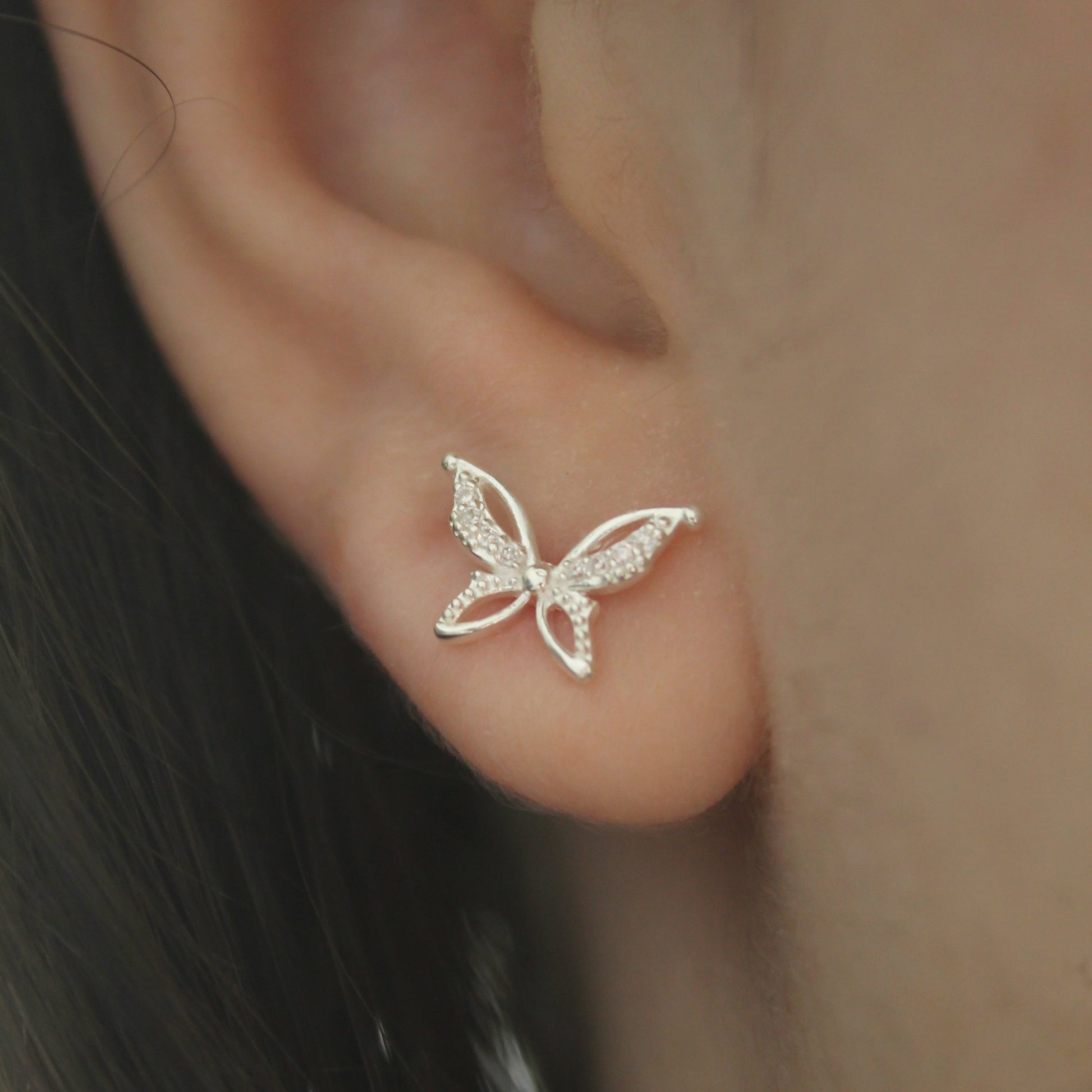 Brinco em Prata 925 borboleta cravejado com zircônias.