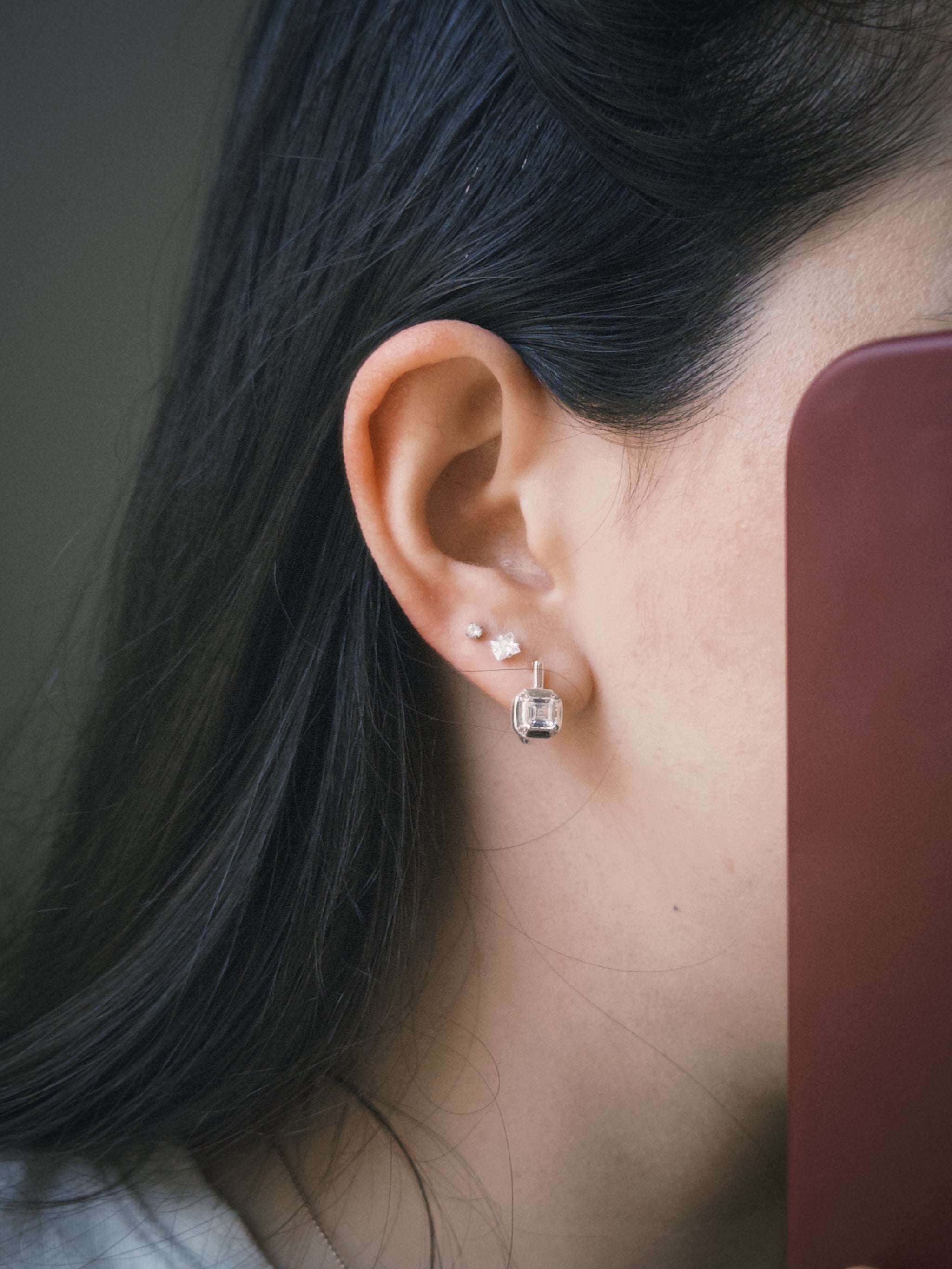 Brinco argola delicada em Prata 925 com zircônia incolor central e fecho click prático e seguro.