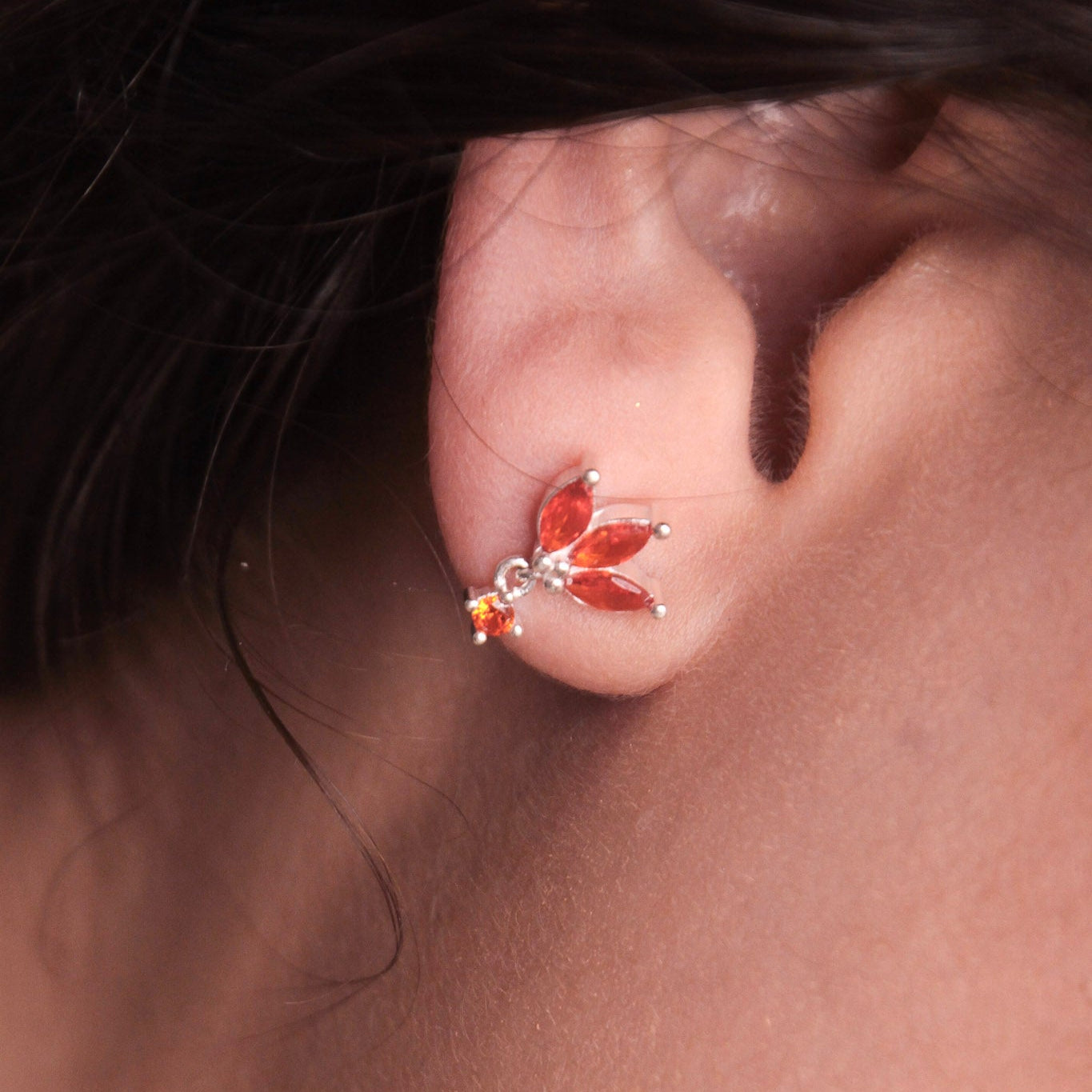 Brinco Flor com Pétalas Laranja em Prata 925 Cravejado de Zircônias