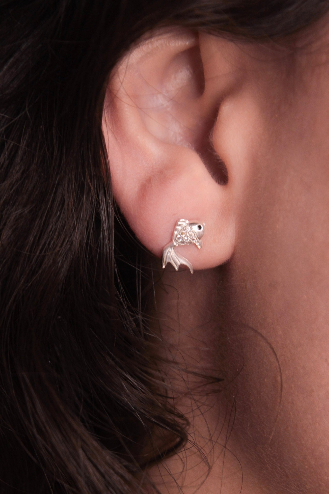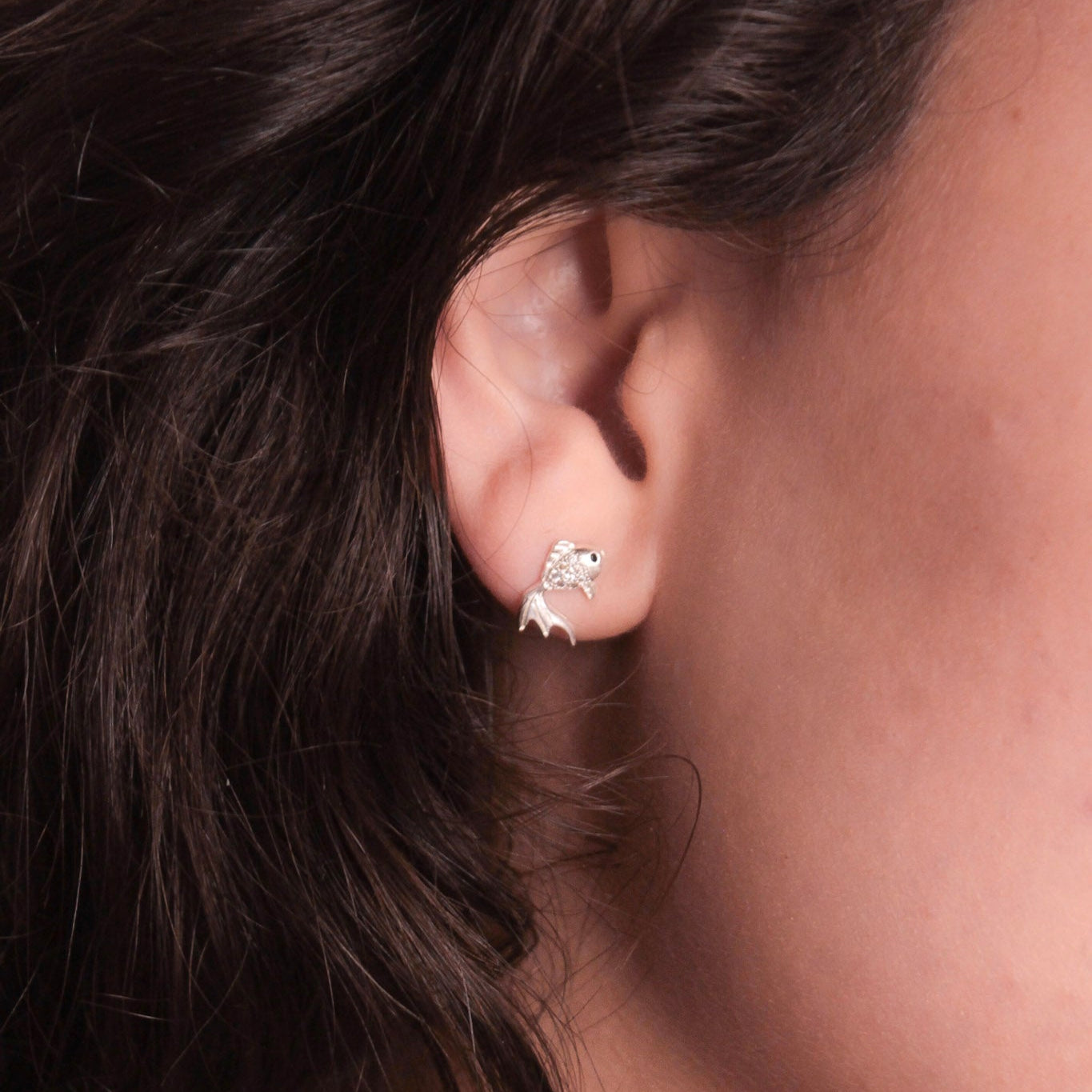 Brinco em formato de peixe com detalhes delicadamente cravejados em zircônias incolores, confeccionado em Prata 925 de brilho duradouro.