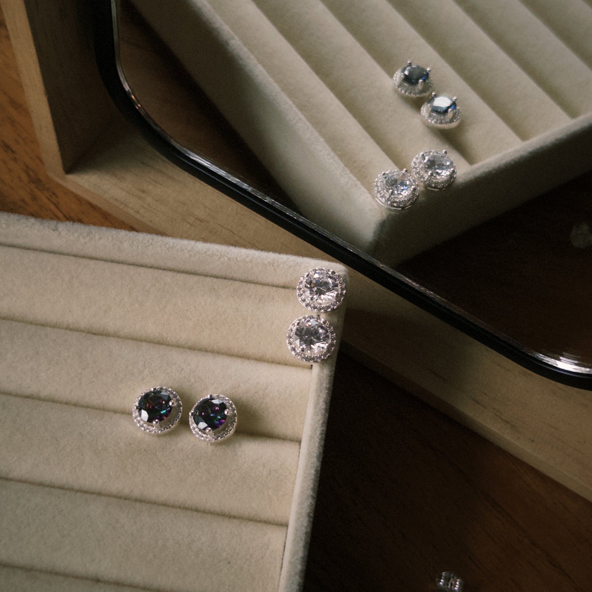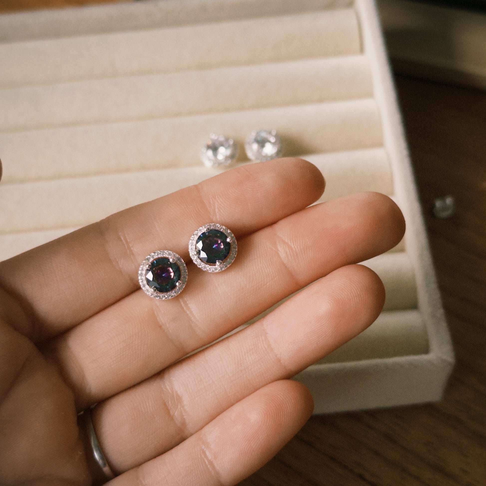 Brinco Ponto de Luz Furta-cor 11mm e Cravejado de Zircônias Incolores