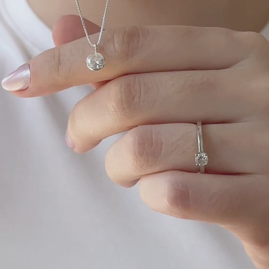 Conjunto em Prata 925 legítima, composto por corrente modelo veneziana e pingente ponto de luz com zircônia de 6 mm, fixada em cravação inglesa.