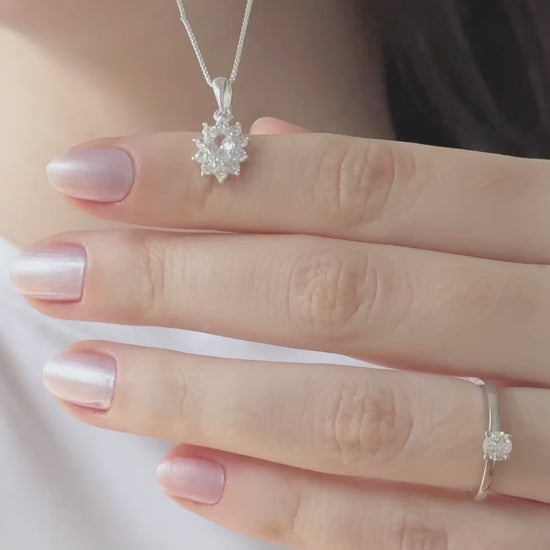O pingente e os brincos possuem formato de flor de 11x9 mm, com cravejamento completo em zircônias que proporcionam brilho intenso e acabamento sofisticado.